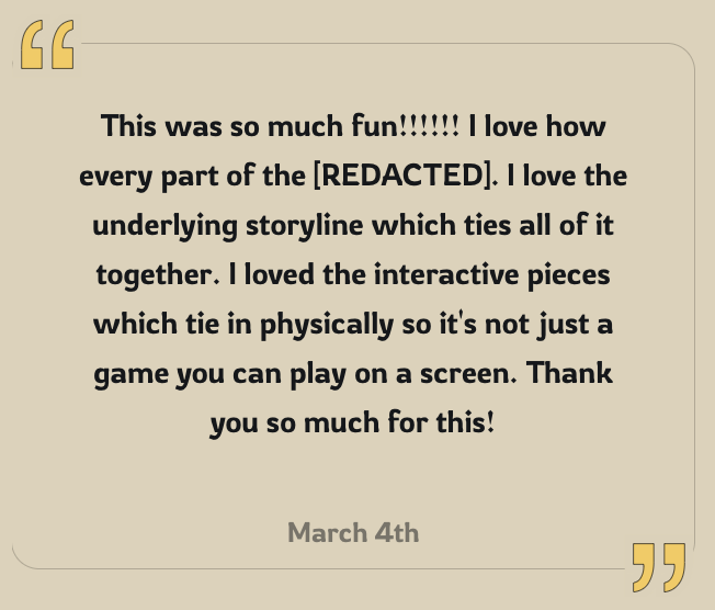 Would they experience the "aha" moments we'd designed? Were the puzzles calibrated correctly? Would the finale deliver the satisfaction we'd hoped for?